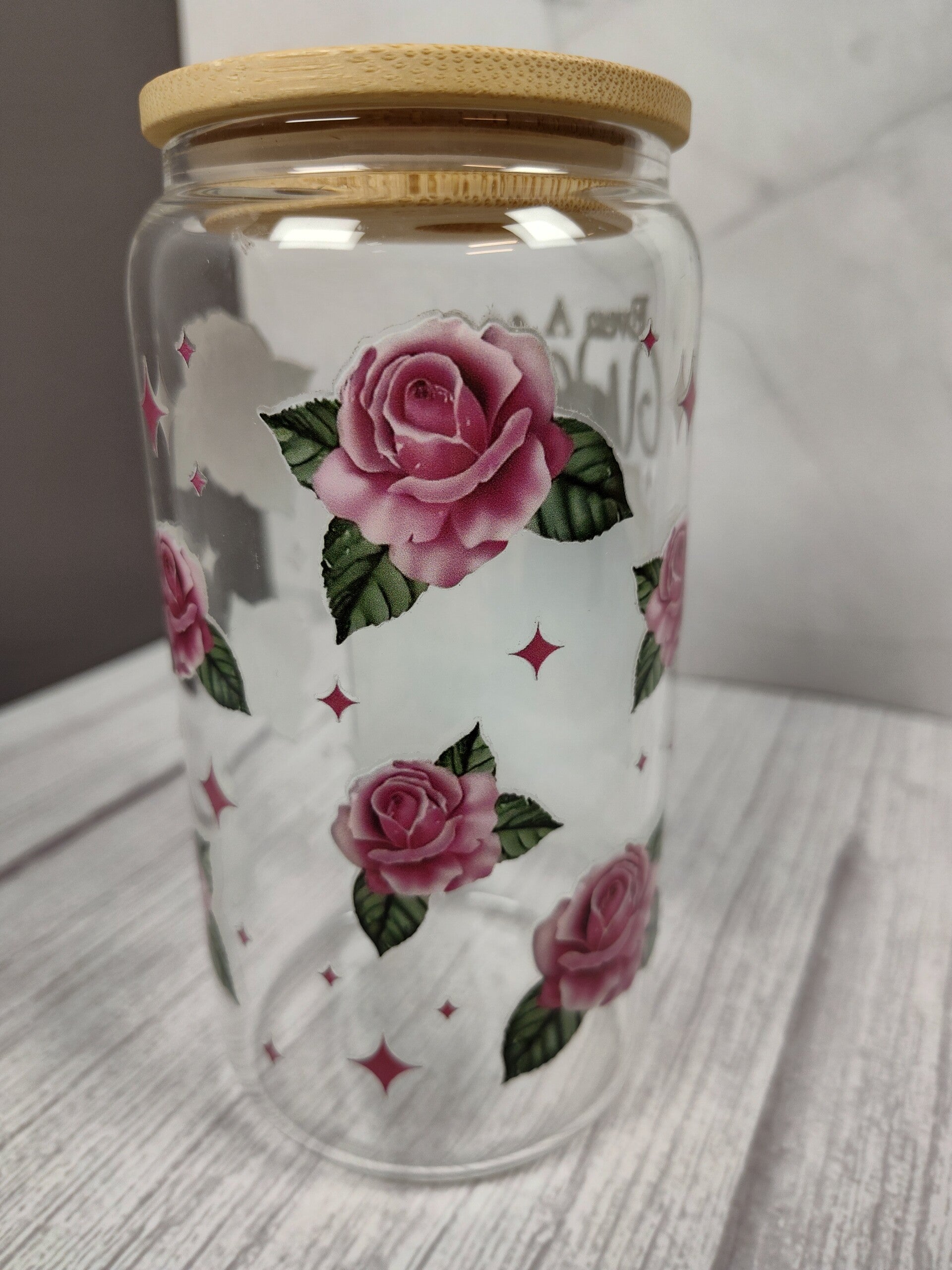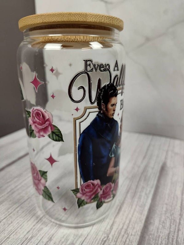 Bridgerton 16oz glass tumbler. Even a wallflower can bloom. Comes with a bamboo lid, straw and box
