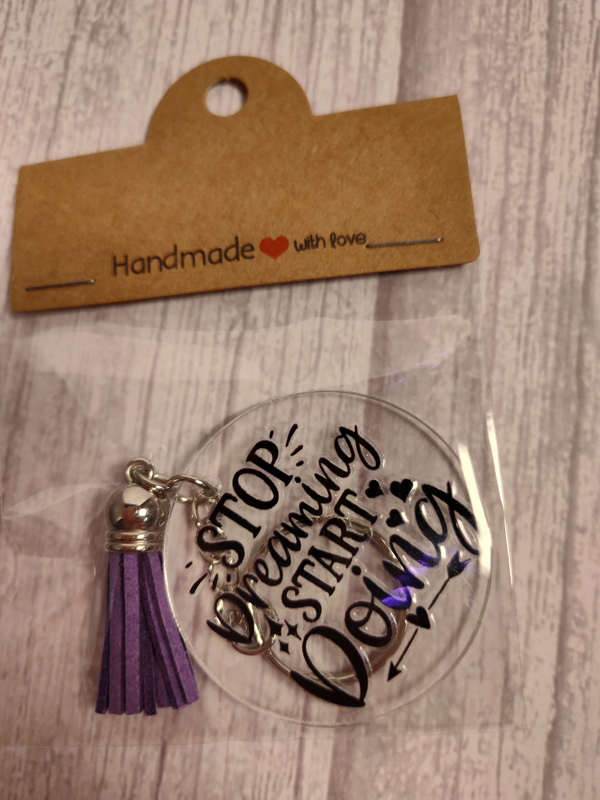 Stop dreaming start doing keychain with tassel
