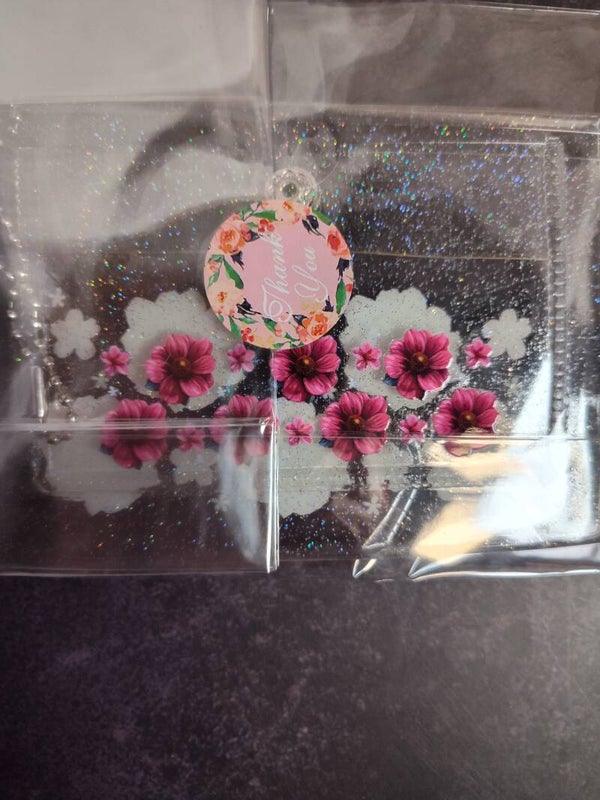 Flower small clear wallet with sparkles. 4 1/2*3 1/2 inches.