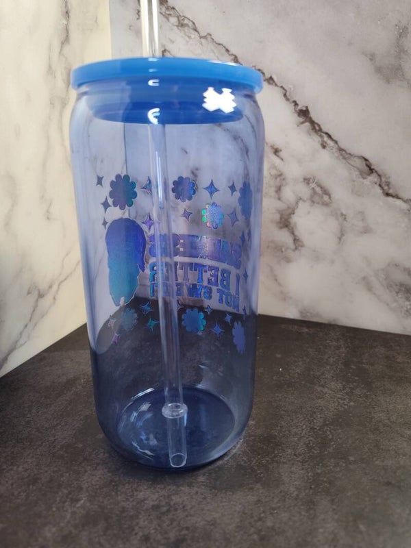 Sadness 16 oz glass tumbler. Comes with a straw. Brand new never used.